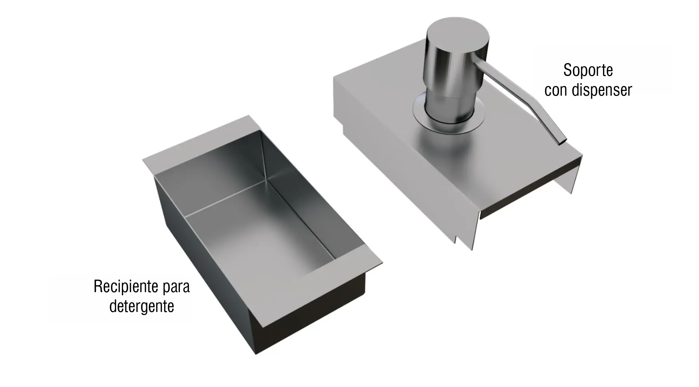 Producto utilizado como dosificador de detergente y jabón líquido. Este kit se puede acoplar al módulo de esponja y detergente de la línea Kitchen 4, 5, y 6 módulos.